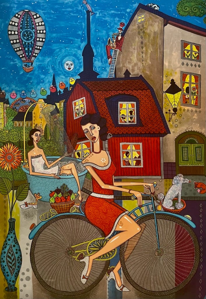 Inledningsvis konstaterar vi att Angelica Wiik är en av våra favoriter bland många erkända konstnärer. Hon tar verkligen vara på färg och stil för många smaker. Angelica Wiik efterbehandlar litografierna med glitter vilket gör att hennes målningar sticker ut lite extra. Läs mer om Angelica Wiiks konstnärskap.