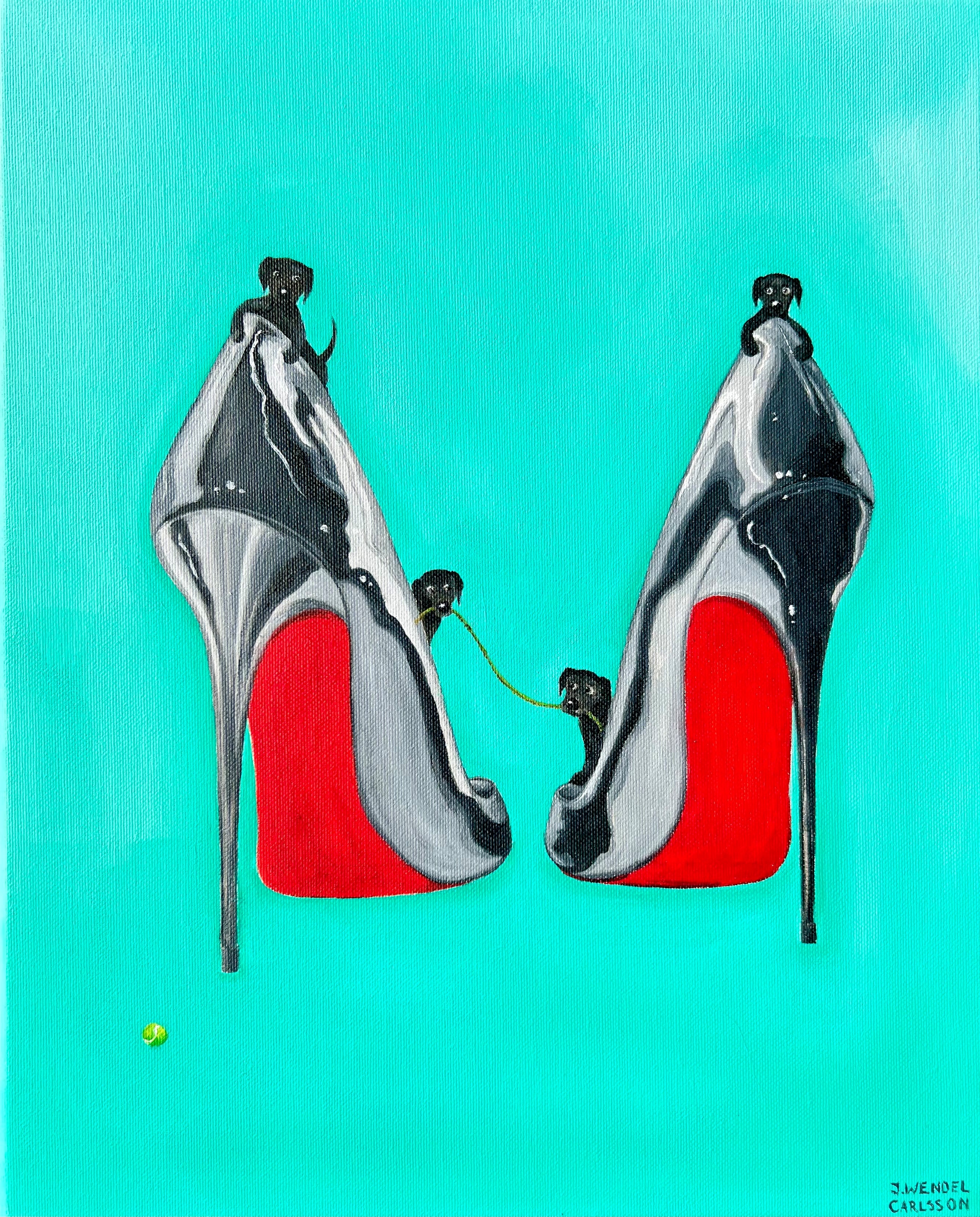 Busiga ”Louibis and pups” – en liten olja för alla som älskar ikoniska klackar och hundvalpar (vem gör inte det?)
