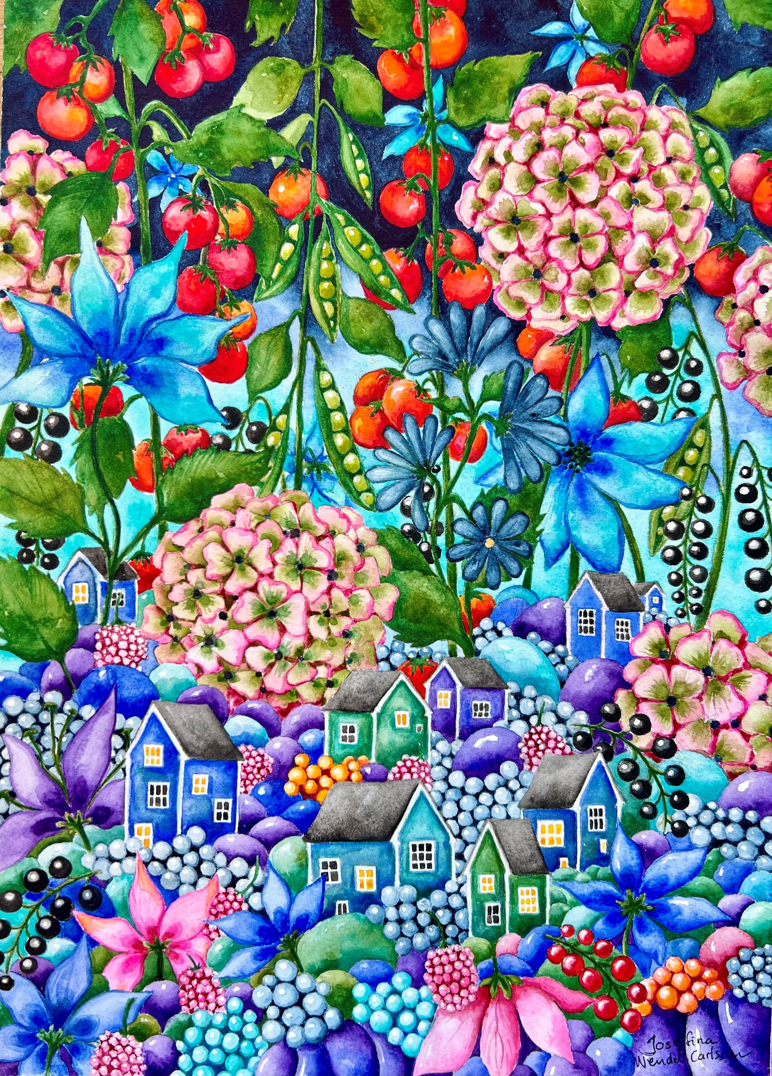 Köpa konst – Josefina Wendel Carlsson – Pea pad garden – Akvarell