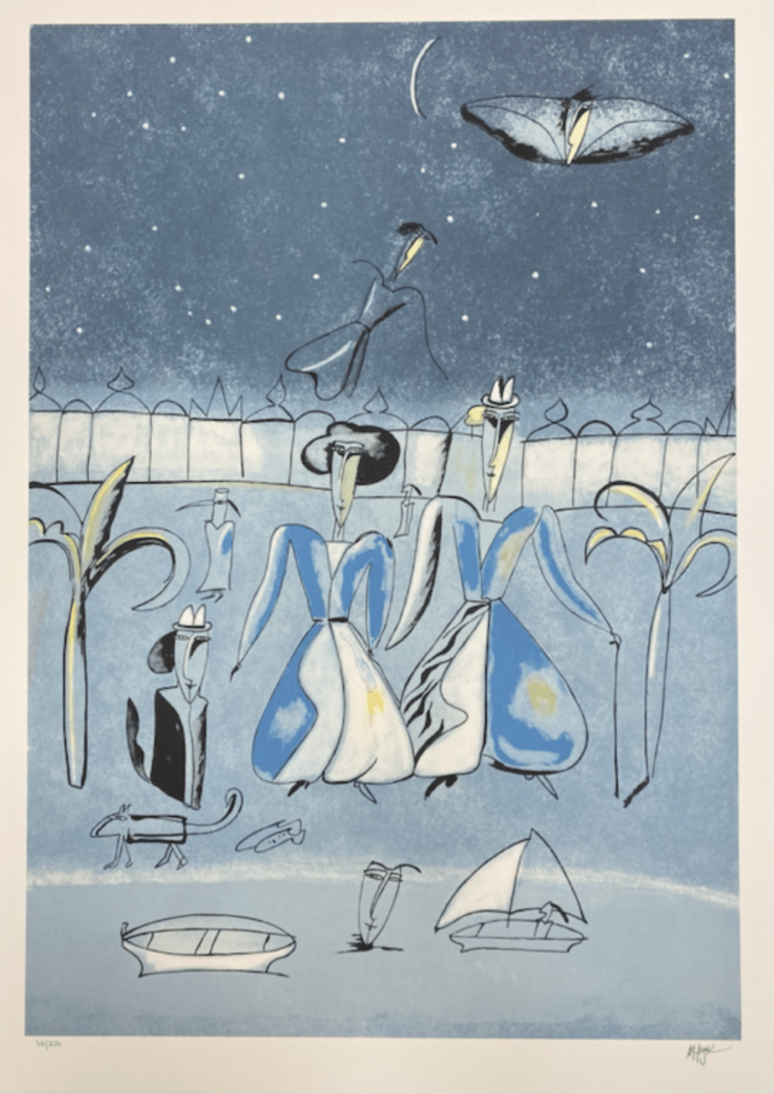 På Galleristockholm kan du köpa konst online och här finns Madeleine Pyk – Nocturne – Litografi samt fler naivistiska litografier och oljemålningar av en av våra absoluta favoritkonstnärer.