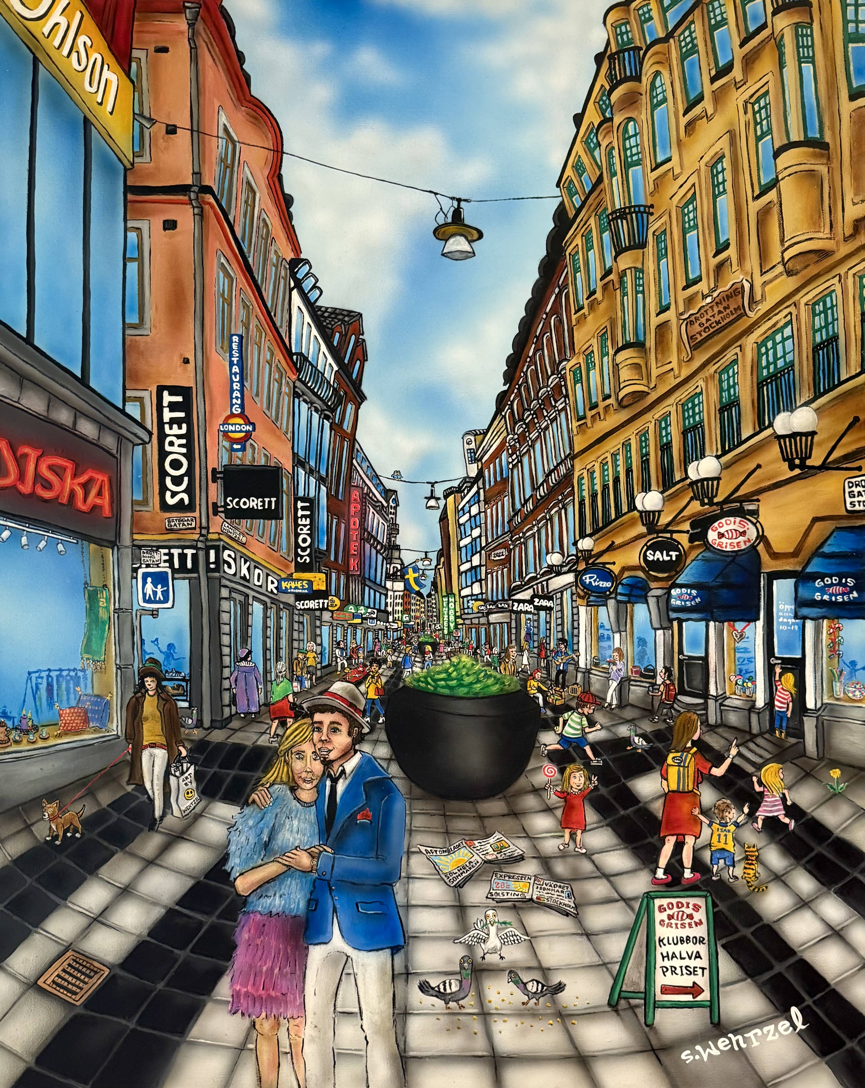 Stefan Wentzel – Drottninggatan Stockholm – Akrylmålning