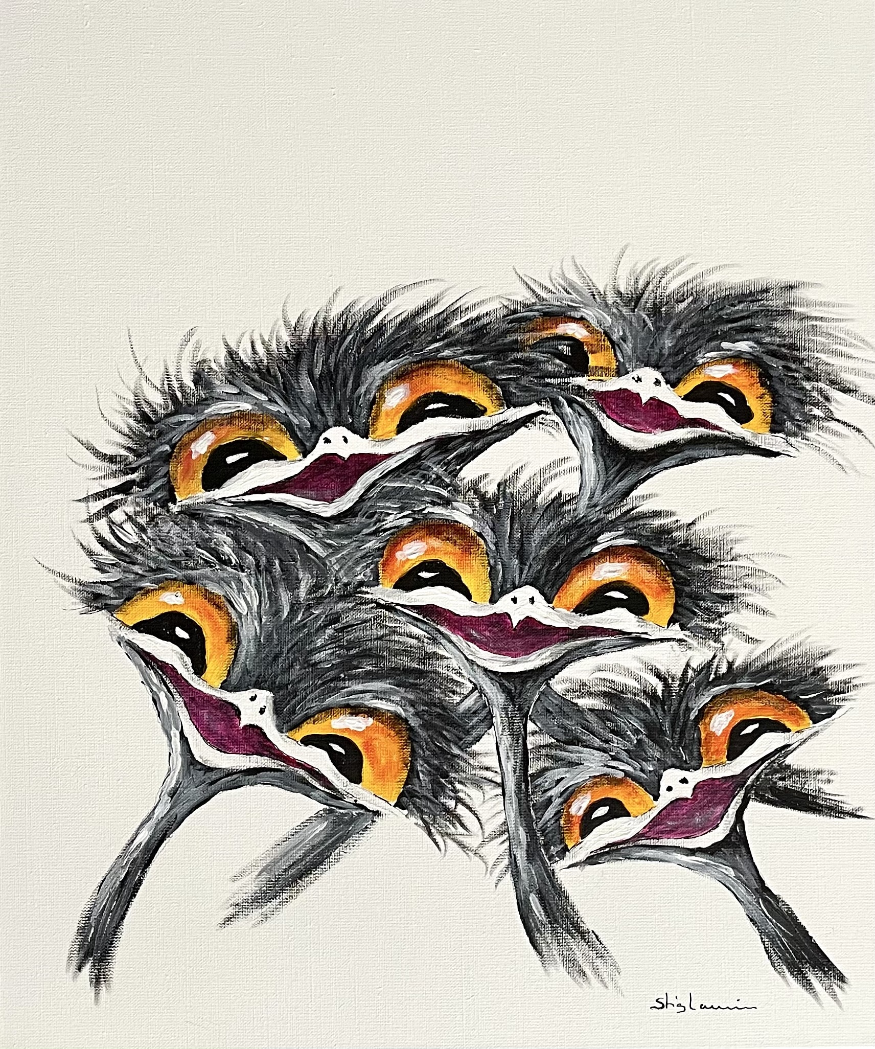 Laurin har målat i runda slängar kring hundratalet solitära strutsar samt ett femtiotal strutsgrupper.