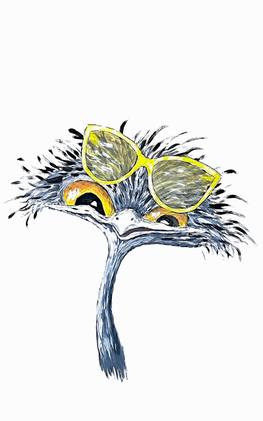 – Jag hade en utställning på Gimo herrgård en påsk och då hade jag målat en liten tavla med en struts. Den var mer lik en struts då. Det var första blickfånget och besökarna blev kära direkt. Denna första struts blev köpt direkt, och det följde med en handfull beställningar där och då. Det blev så otroligt populärt, så det är helt enkelt anledningen till mina strutsmålningar.